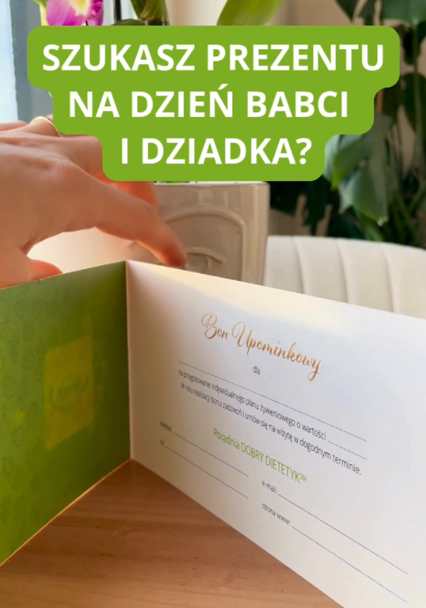 W moim gabinecie dietetycznym możesz kupić bon upominkowy na konsultację dietetyczną lub wybrany pakiet współpracy.